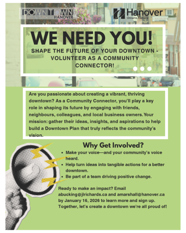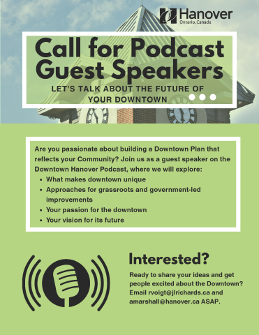 Interested? Ready to share your ideas and get people excited about the Downtown? Email rvoigt@jlrichards.ca and amarshall@hanover.ca now.